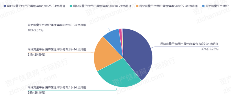 根据年龄统计网站流量,可以发现各年龄段对于网站的使用程度有所不同。其中25-34的人群在网站的使用中最多,占据了约39%的流量。其次是18-24岁的群体,占据了约28%的流量。再然后是35-44岁的群体,占据了约百分之21的流量。剩下的群体流量占比较小,因此可以看出各年龄段在网站的使用方面有所不同。
