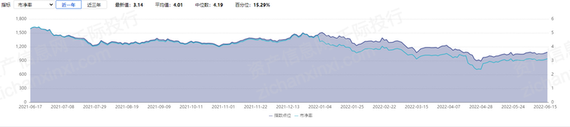 PB相比于PE值下降幅度稍大,一年内从5.3下降到3.14,下降幅度显著大于PE的下降幅度。参考PB-Bands的区间,可以看出PB大部分时间位于3.34到4.62,当前PB指数低于3.34,因此网站行业当前存在被低估的可能性。