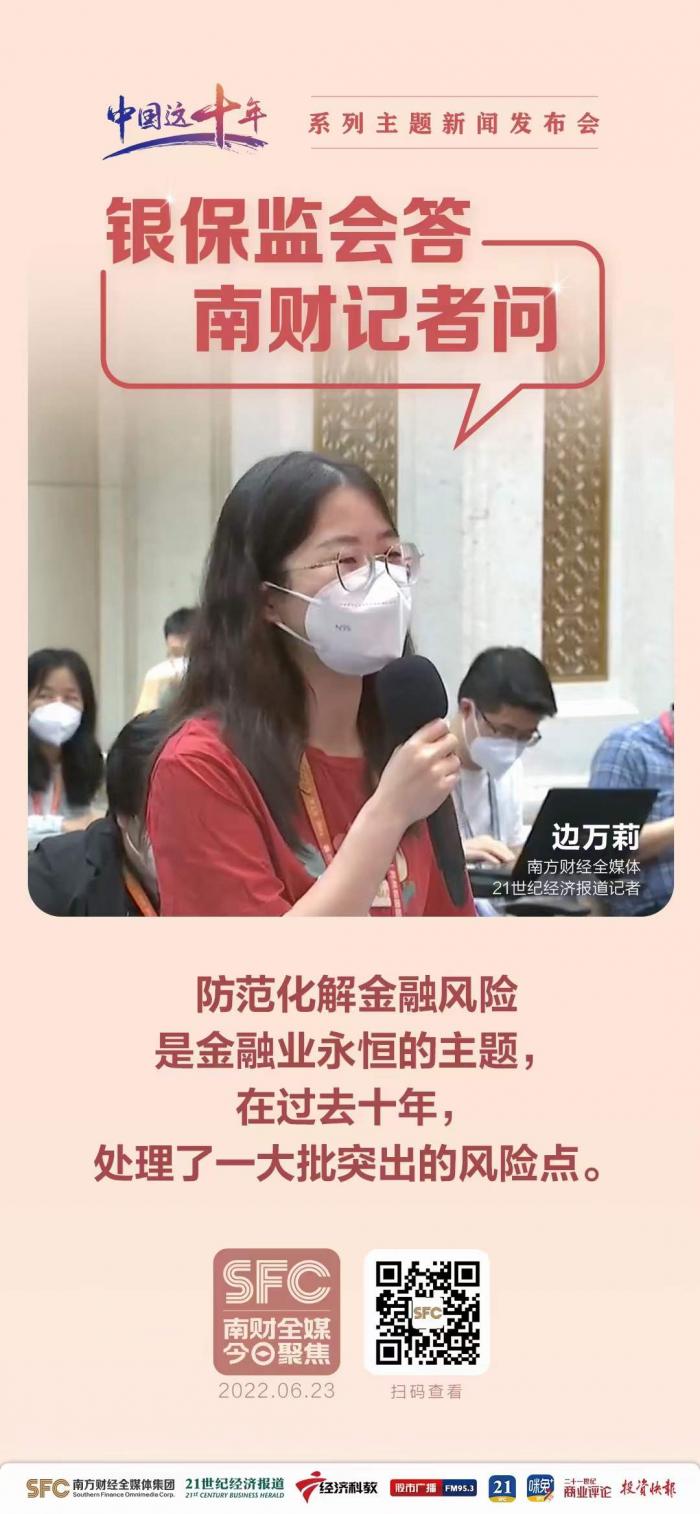 21世纪经济报道记者 边万莉 北京报道 6月23日,中共中央宣传部举行“中国这十年”系列主题新闻发布会第十场。中国银行保险监督管理委员会副主席肖远企在回答21世纪经济报道记者提问时表示,防范化解金融风险是金融业永恒的主题。我们始终坚持理性思维、底线思维,化解重点机构、重点环节、重点业务领域、重点地区的风险。在过去十年,处理了一大批突出的风险点。