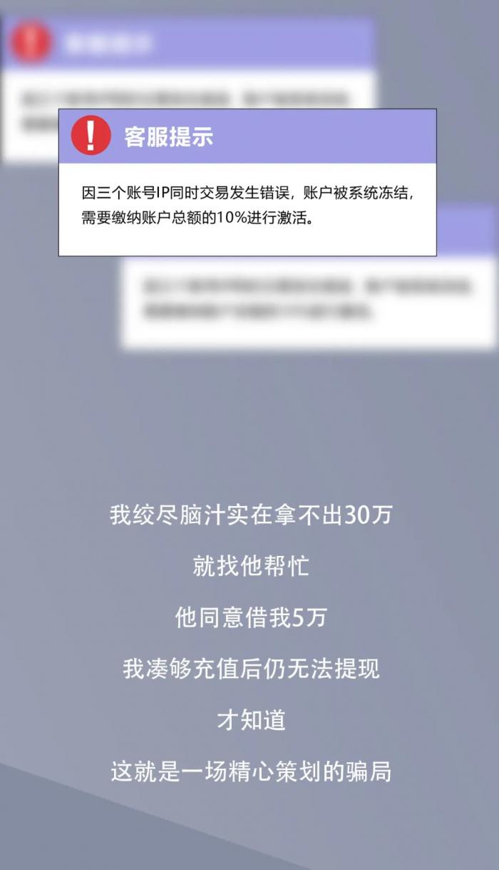 刚开始注册平台投入都能小额提现,那看似疯狂增长的收益背后却是引诱大额追加,直到无法提现。平台客服会以缴纳「保证金、手续费 、解冻费」为由要求转账,缴费后平台关闭或拉黑事主。