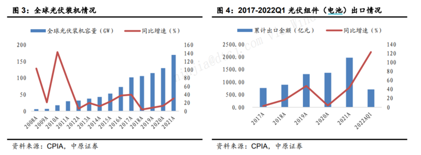 同期国内光伏企业出口光伏组件37.2GW,同比增长112%;出口金额106亿美元,同比增长122.9%。