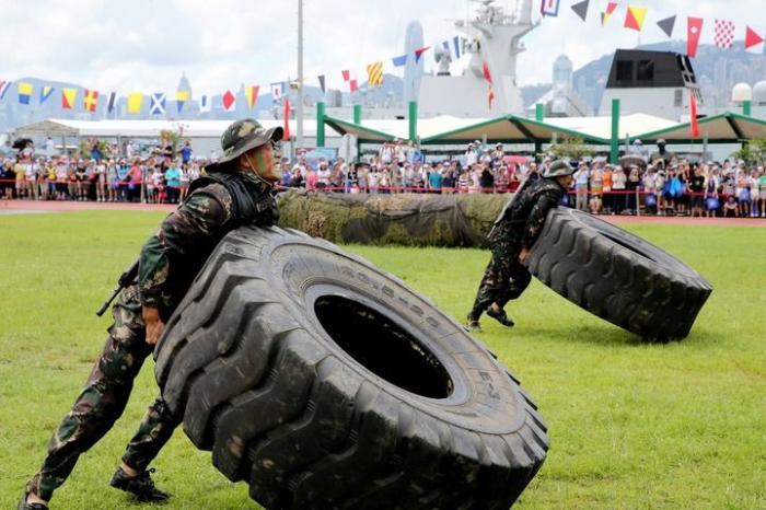 ↑驻香港部队组织营区开放活动(2019年7月1日摄)。新华社发(郭圣本 摄)