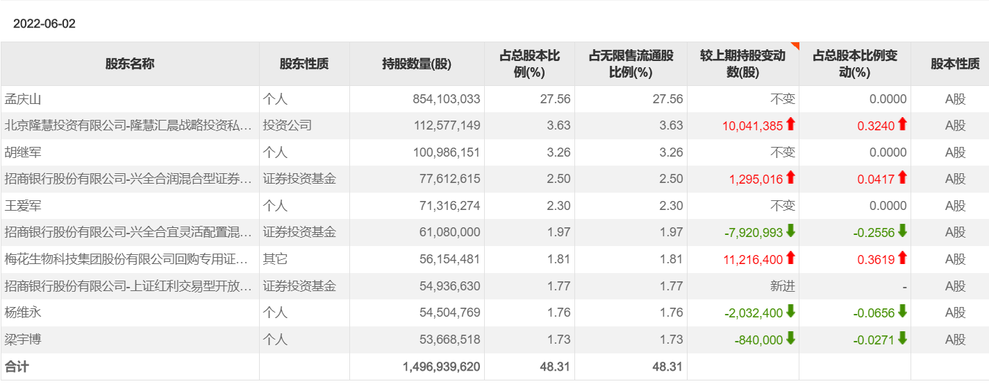 6月7日,梅花生物公布一则关于前十大股东和前十大无限售条件股东持股情况的公告,内容显示,截至2022年6月2日,由基金经理谢治宇管理的兴全合润持有梅花生物个股数量达7761.26万股,较一季度末增加129.5万股,持股市值为7.34亿元,位列梅花生物的第四大股东;另一只同样由谢治宇管理的兴全合宜持有梅花生物个股数量达6108万股,较一季度末减少792.1万股,持股市值为5.78亿元,位列第六大股东。