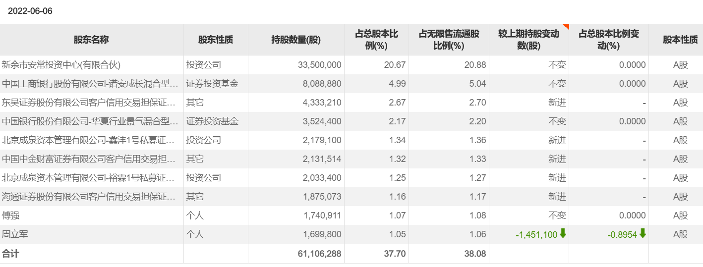 6月23日,杭叉集团公布一则关于回购股份事项前十大股东和前十大无限售条件股东持股情况的公告,内容显示,截至2022年6月15日,由基金经理李竞管理的东方红启东三年、基金经理傅鹏博、朱璘管理的睿远成长价值混合现持有杭叉集团24.02.93万股、2113.34万股,相较一季度末分别减持345.15万股、867.29万股,目前位列第三、四大流通股东。