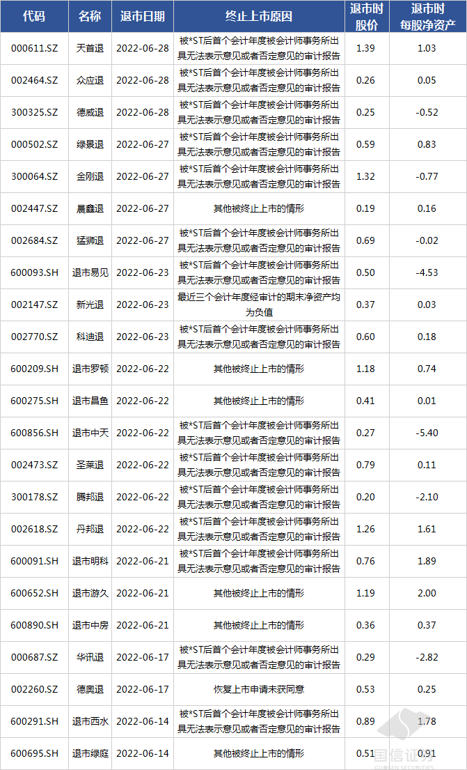 可以预见的是,全面注册制的开启渐行渐近。注册制背景下,股票发行将大幅提速,为了实现真正的优胜劣汰,这就要求退市的制度和力度也要跟上,进而提高上市公司质量。小信梳理了6月以来A股的23家退市公司,单月退市数量创A股历史之最。