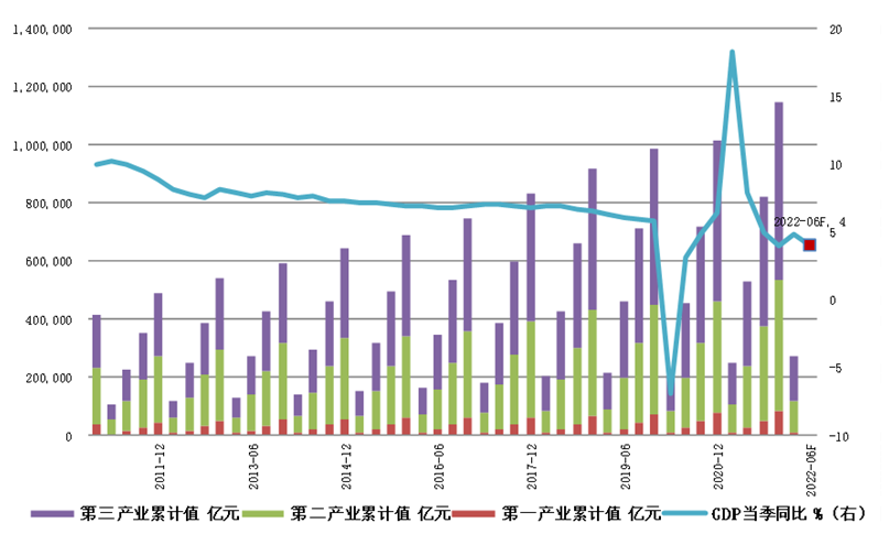 初步核算,2022年一季度国内生产总值270,178.00亿元。按不变价格计算,当季同比增长4.80%。近四个季度的当季GDP同比增长分别为7.90% 、4.90% 、4.00%、4.80%,近四季度经济持续稳定恢复。Wind统计的机构预测均值显示,2022年二季度GDP当季同比增长4.00%。