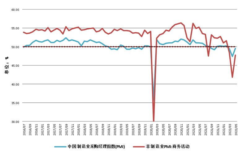2022年5月份,国家统计局5月31日发布的数据显示,2022年5月份中国制造业采购经理指数(PMI)为49.6%,较上月上升2.2个百分点。调查的21个行业中,PMI位于扩张区间的行业由上月的9个增加至12个,制造业景气面呈现积极变化。有关专家表示,5月份PMI指数回升,表明疫情影响明显减弱,稳增长、保民生多项政策效果开始显现。但需求收缩、供给冲击等压力仍很严重,疫情对经济增长的影响仍不容低估。要进一步精心统筹好防控疫情和稳增长、保民生的大局,以更大力度有效应对三重压力,尽快释放中国经济增长潜力,不断增强中国经济回升向好势头。从分项指标来看,生产指数较大幅度回升,表明应对疫情影响、全面复工复产的努力效果明显;新订单、新出口订单指数回升,表明疫情对短期需求的抑制明显减弱。也要注意到,PMI指数仍处荣枯线以下,购进价格指数仍处高位,反映原材料、物流成本高的调查企业比重仍超过50%;订单类指数均处荣枯线下,反映需求不足的企业比重超过40%。