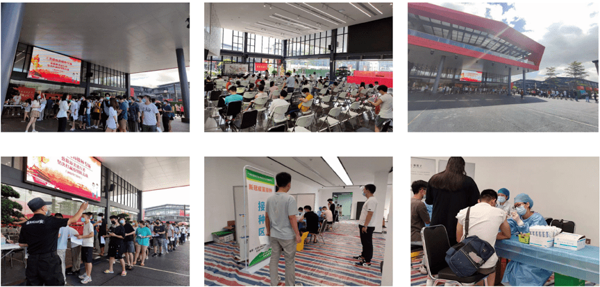 每一次核酸、疫苗专场,园区内热心的餐饮店几乎都会为医护人员和工作人员送来饭盒和降温的饮品,园区的企业早已与我们成为了“家人”,在同一个园区,在同一个广州,我们一同经历着同一场新冠疫情的猛烈挑战。截至目前,工美港配合社区举行了5场疫苗专场,配合接种疫苗人数达到4000人次以上。
