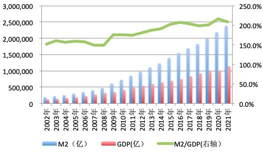 这一表述背后有数据支撑。记者根据Wind数据显示,2012-2021年间M2年均增速为10.8%。同期GDP、CPI年均增速分别为6.7%、2.1%。在全球高通胀当下,中国当前2%左右的CPI读数使得“不超发货币”的说法颇具信服力。