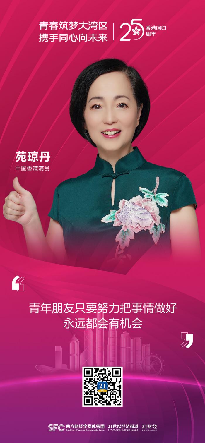 苑琼丹寄语年青人:“青年朋友只要努力把事情做好,永远都有机会的。希望香港经济更好了,更上一层楼,祖国肯定是希望越来越强大,香港明天会更好。”