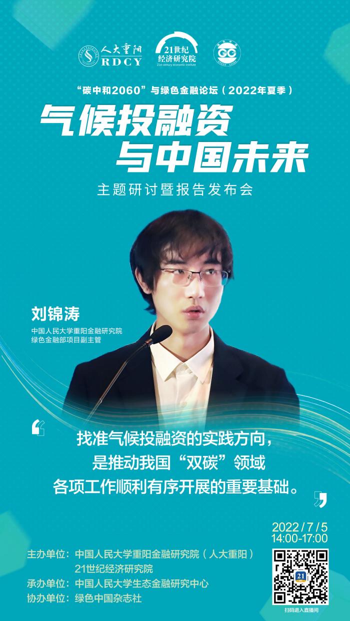 7月5日,首份中国气候投融资智库报告——《气候投融资与中国未来》(以下简称“报告”)在中国人民大学重阳金融研究院和21世纪经济研究院联合举办的“‘碳中和2060’与绿色金融论坛:气候投融资与中国未来”上正式发布。