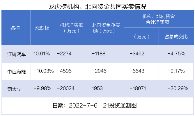 值得注意的是,机构和北向资金共同净卖出了江铃汽车、中远海能等2股;在司太立上出现分歧,机构净卖出司太立2亿元,北向资金净买入1953.37万元。