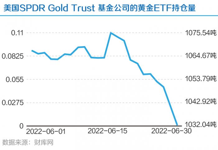 全球最大的黄金ETF——SPDR的持仓量持续下滑,最新数据显示,7月5日资金减持9.86吨的仓位,持仓量为1032.04吨。其实从6月21日开始,SPDR的持仓就呈现持续下降,且逐步放量。