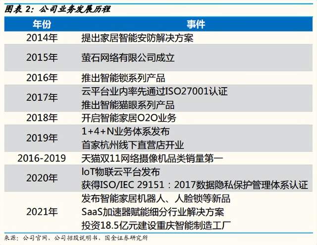 2015年,萤石网络公司正式成立,并逐渐发展成为智能家居摄像头这一细分板块的代表性企业。