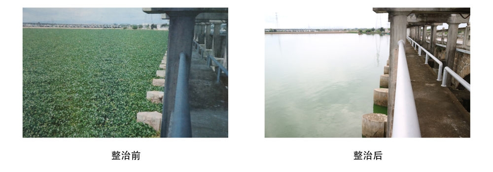 练江海门湾桥闸附近河段整治前后对比。(广东省生态环境厅供图)