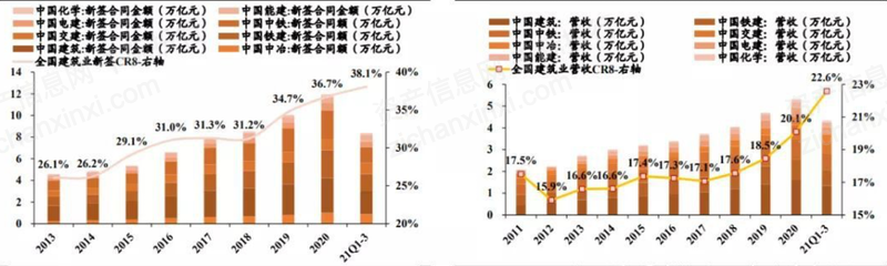 近年来,基建相关的建筑行业集中度提升趋势明显,一方面,大型建筑企业的合同订单及产值占比持续提升,企业承接大型项目的能力不断提升。头部企业作为国家重点基建项目的主力军,受到宏观基建发力的积极影响,可以实现收入超行业平均水平的增长。另一方面,中小型企业更易受到客户信用风险及原材料价格上涨等方面压力的影响。传统基建行业作为资金密集型行业,其中的中小企业主要通过垫资形式争取项目,竞争方式较为激进,回款周期较长,抗风险的能力较弱。