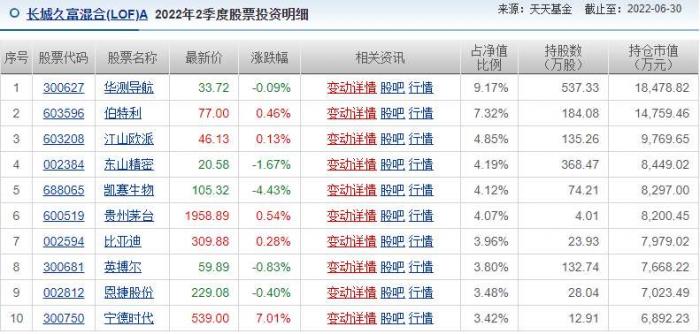 具体仓位而言,长城久富混合前十大重仓股分别为华测导航、伯特利、江山欧派、东山精密、凯赛生物、贵州茅台、比亚迪、英搏尔、恩捷股份、宁德时代。其中,华测导航、英搏尔、宁德时代获增持,伯特利、江山欧派、凯赛生物、恩捷股份等被减持。