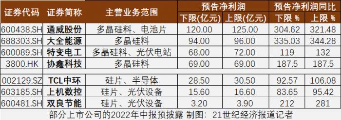 大全能源(688303.SH)和通威股份(600438.SH)上半年的归属于上市公司股东的净利润同比将翻超三倍。