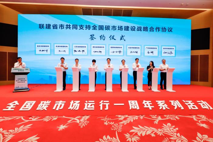在今日活动的签约环节,湖北宏泰集团与重庆市、天津市、江苏省、福建省、北京市、广东省、深圳市等8个碳市场联建省市签订战略合作协议,合力推进以中碳登为大脑中枢的碳市场生态建设。