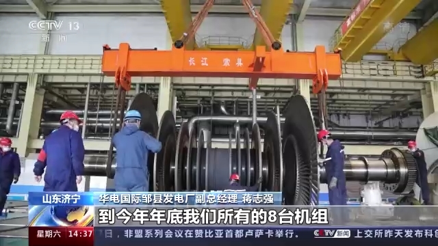 华电国际邹县发电厂副总经理 蒋志强:到今年年底,我们所有的8台机组,都将完成全面的节能改造。改造完之后,按照我们目前这样一个发电的负荷率来预计,全年的节煤量大概是36万吨,每年的碳减排的量接近百万吨。