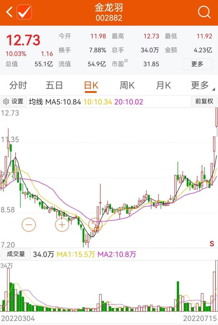 7月13日以来的三个交易日,金龙羽已连续收获三个涨停。