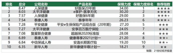 其中获得四星推荐指数的有人保健康的好医保20年期以及太平洋健康的e享护-医享无忧。