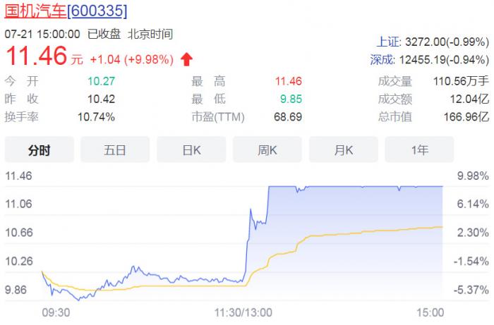 7月21日,滴滴绯闻对象,国机汽车涨停。