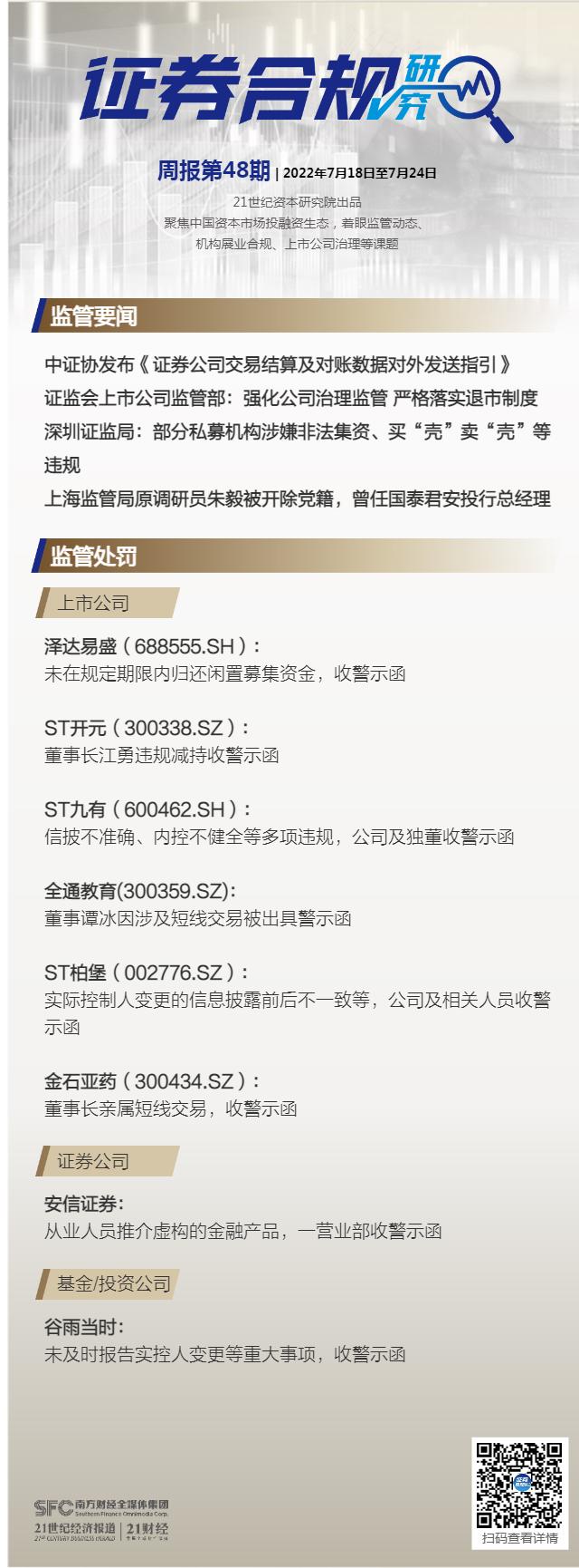7月21日,ST开元公告,公司董事长、代董事会秘书江勇于近日收到湖南证监局出具的《关于对江勇采取出具警示函措施的决定》。经查,江勇作为公司董事长兼代董事会秘书,于5月27日通过大宗交易减持公司股份150万股,成交金额360万元。上述减持构成违规减持,湖南证监局决定对江勇采取出具警示函的行政监管措施,并记入证券期货市场诚信档案。