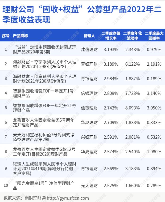 “固收+权益”二季度榜单出炉!6家理财公司上榜