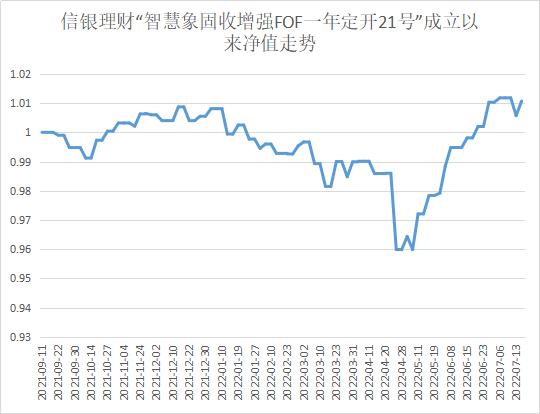 (信银理财“智慧象固收增强FOF一年定开21号”成立以来净值走势)