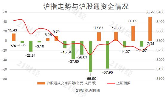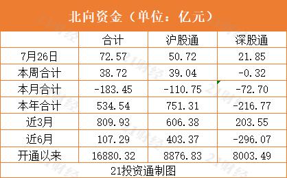 据21投资通(微信号ID:touzit21)智能监测,北向资金全天净买入72.57亿元,其中沪股通净买入50.72亿元,深股通净买入21.85亿元。