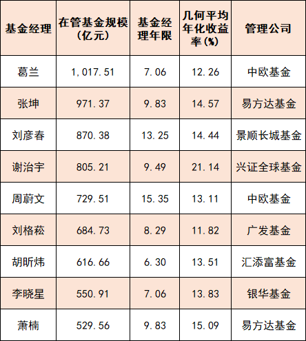 9位基金经理跻身“500亿天团”