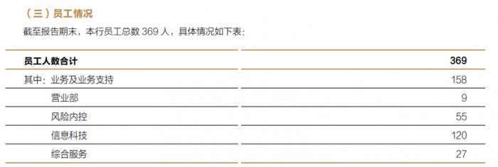 截至2021年末,全行人数369人,其中信息科技120人。数字化转型带动数字化业务占比达到64%,较上年度提升14个百分点。