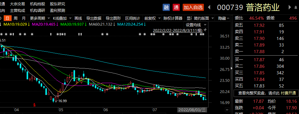 8月3日,普洛药业收盘价为17.87元/股,当日股价上涨0.22%,总市值210.6亿元。7月份,普洛药业股价下跌6.49%。
