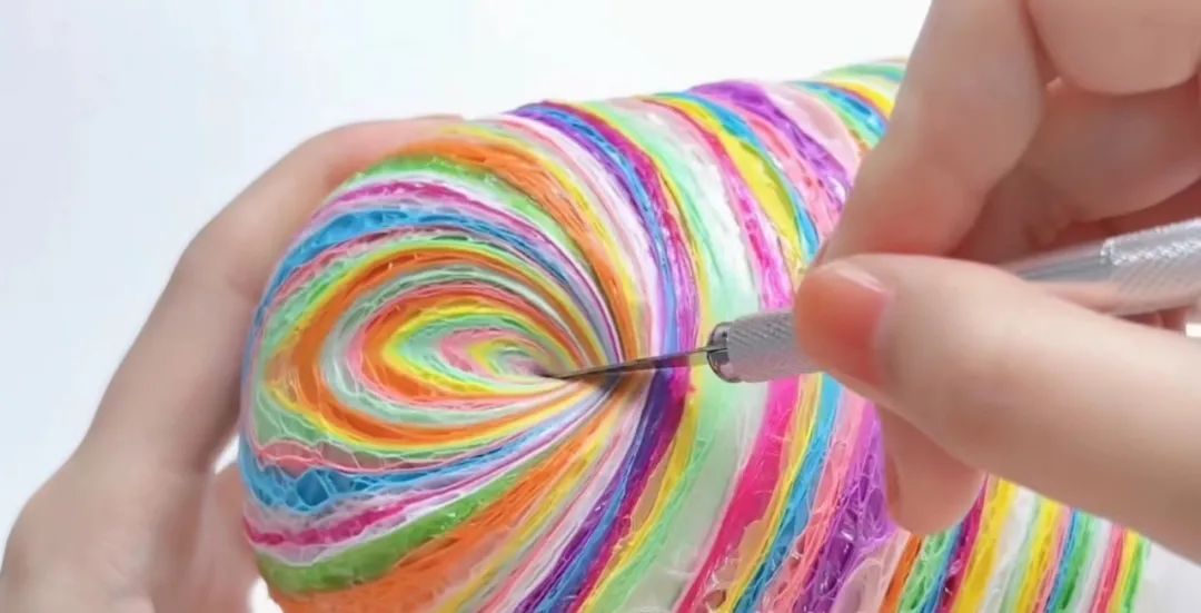 除了捏五颜六色、各种形态的史莱姆,胶带球的玩法也各式各样。