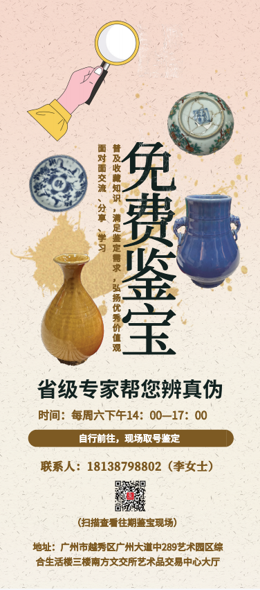暑气散,立秋上,进入八月广东的酷热还未消散,而这周六我们也将迎来免费鉴宝活动第六期。在之前的鉴宝活动中,不少藏友已从中获益颇多。近年来随着收藏热的兴起,不少新的藏友进入了这个领域。有的藏友对待藏品兴致很高,但鉴赏力不足;有些藏友更关注藏品的市场价值而非审美价值;也有些深耕收藏领域多年的藏友对自己的藏品拿不准、吃不透。