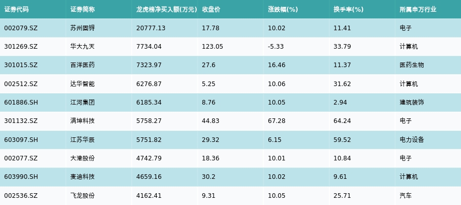 五、龙虎榜情况