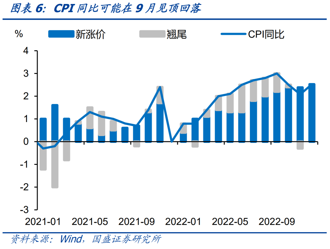 基数效应下未来三季度CPI同比仍将继续上升,但幅度有限,预计通胀将于近期年内见顶回落。一方面,去年3季度CPI基数较低,3季度月均环比为0.1%,三季度低基数将继续推高CPI同比增速;另一方面,猪肉价格与大宗油价近期震荡下行,这或将进一步压低CPI。从而我们预计未来2个月CPI同比增速将见顶回落,3季度高点或在3%左右,但核心CPI依然将保持疲弱。