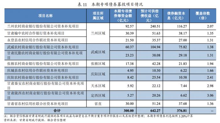 值得注意的是,这11家机构中还包括甘肃省联社,这也是中小银行专项债发行以来,首次用于补充省联社的资本。
