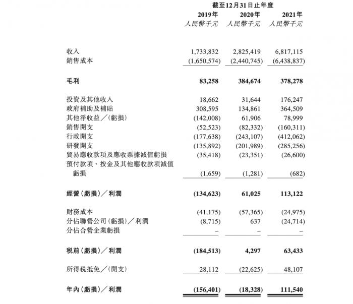 成果显现在盈利能力上。中创新航净利润由2019年的-1.56亿,提高到2021年的1.11亿元。