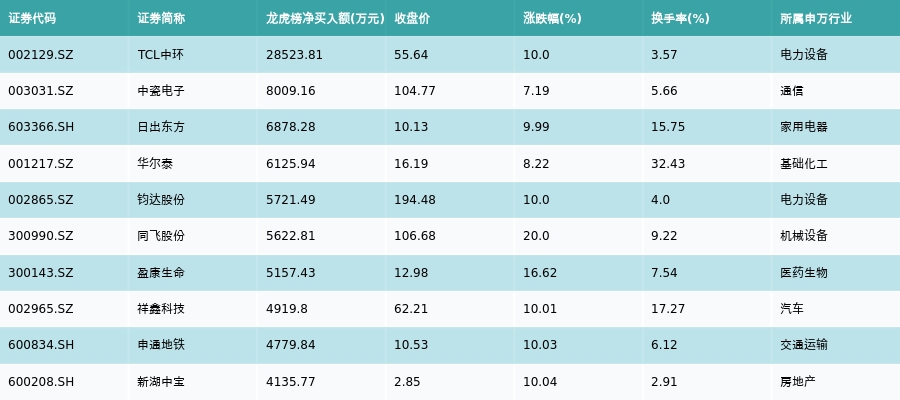 8月15日,龙虎榜营业部净买入额前10详情见下表: