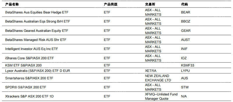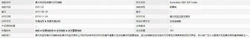 目前,全球有多家基金公司开发澳大利亚标普200指数相关基金。目前国内还没有以澳大利亚标普200指数为业绩基准的基金。