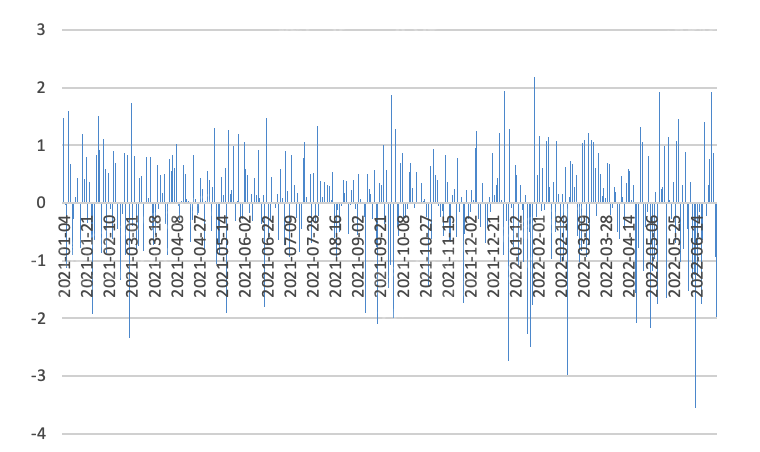 2021年1月1日至2022年6月30日,澳大利亚标普200指数的日涨跌幅均值为0.0026%,标准差为0.04402%,单日涨幅最大达到了2.19%,单日最大跌幅为3.55%。