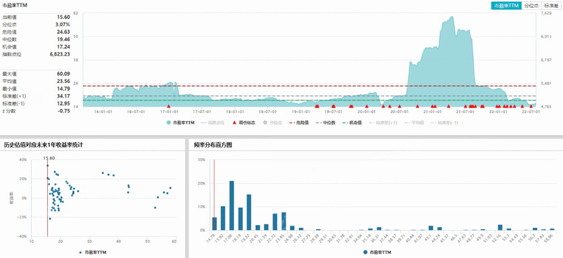 截至2022年7月27日,该指数PE-TTM为15.6x,处于近十年来的3.07%。2021年7月下旬开始,指数估值持续回落,目前已经处于较低水平。