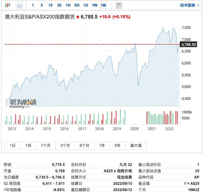 图 澳大利亚标普200指数期货行情概览(截至2022年7月28日)