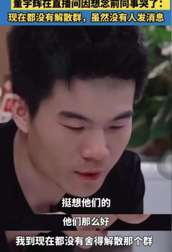 此前董宇辉在东方甄选直播间谈及新东方前同事时数次哽咽,泪洒直播间。“现在都没有解散那个群,挺想他们的,等新东方好的时候把他们再接回来。”董宇辉说道。