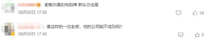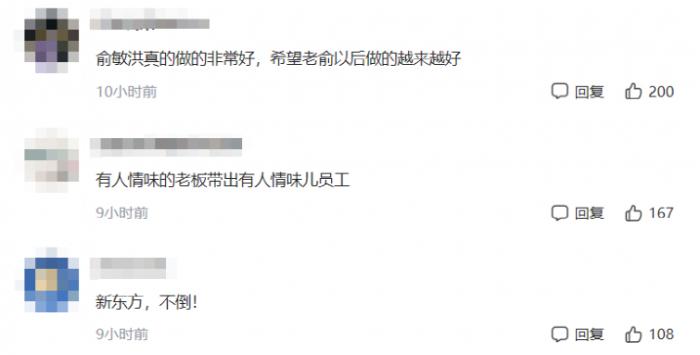 网友也对此动容,并表示,“俞敏洪真的做的非常好,希望老俞以后越做越好。”“有人情味的老板带出有人情味的员工。”“有温度的企业。”