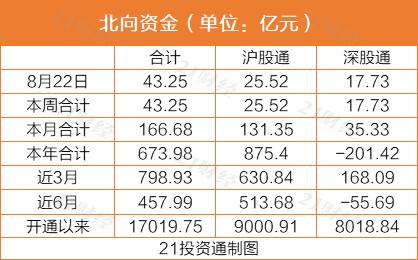 据21投资通智能监测,北向资金全天净买入43.25亿元,其中沪股通净买入25.52亿元,深股通净买入17.73亿元。