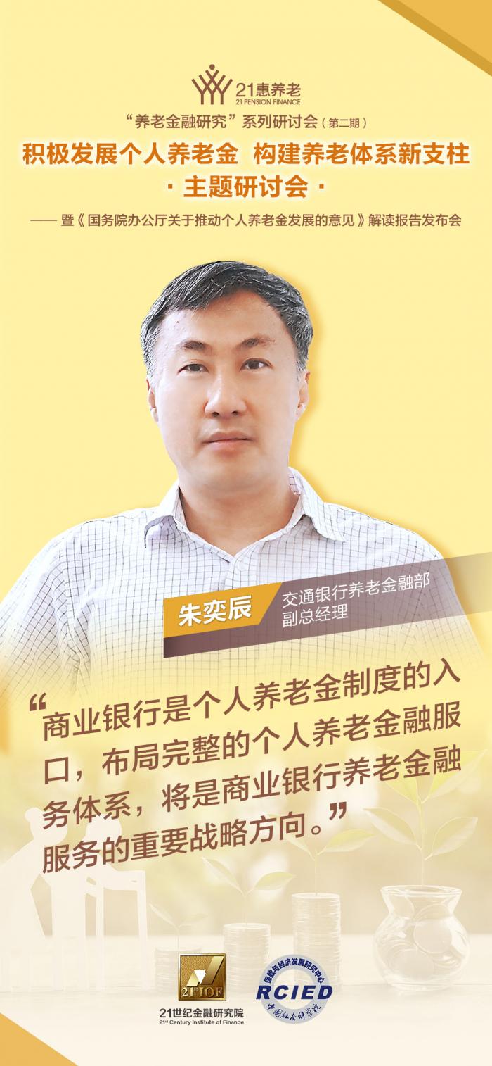 “随着国家养老保障制度改革推进、社会财富的持续增长、居民养老意识的不断提高,全社会对个人养老财富储备需求将持续提升,个人养老金业务存在巨大发展空间。”8月19日,交通银行养老金融部副总经理朱奕辰出席由21世纪金融研究院与中国社会科学院保险与经济发展研究中心共同举办的“积极发展个人养老金,构建养老体系新支柱”主题研讨会时表示。