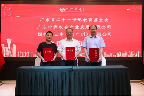 近日,广东省二十一世纪教育基金会与乡村振兴全国消费帮扶广东馆以及国检鉴证中心(广州)有限公司在广州市海珠区中洲交易中心北广场举行了“战略合作签约仪式”。广东省二十一世纪教育基金会秘书长谢奇,广州中洲农会董事长、乡村振兴全国消费帮扶广东馆董事长袁野,国检鉴证中心技术负责人蔡日光出席了签约仪式。